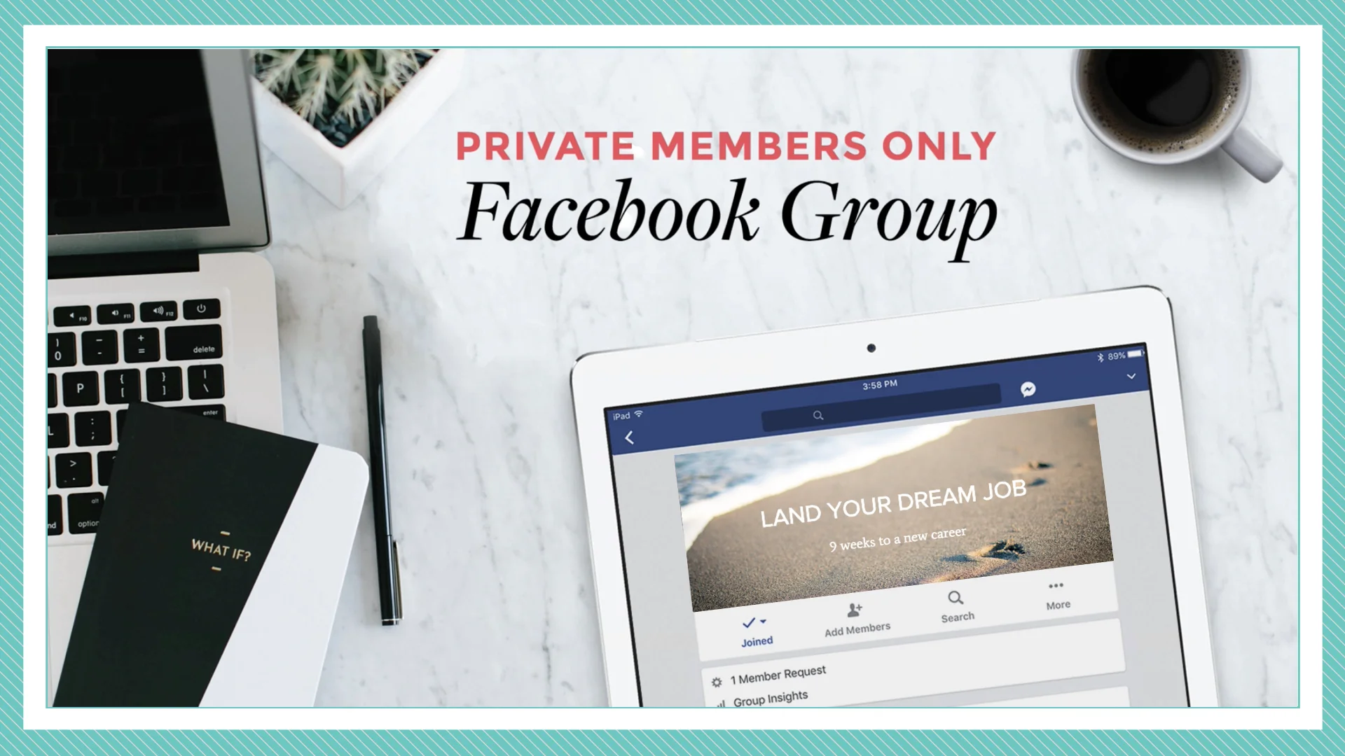 When you sign up for LYDJ, you get a free 30-minute coaching session with me to use at any time during your LYDJ experience. AND access to me for all of your ongoing job search queries via our Private, Members-Only Facebook Group.